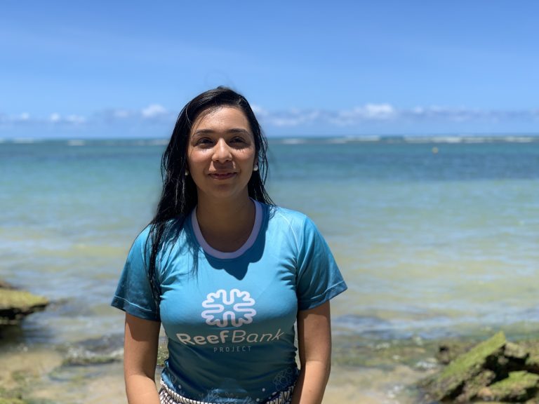 Meu nome é Nayara Cruz, sou tecnóloga em aquicultura pelo IFPA, Mestre pela Universidade Nilton Lins / INPA e doutoranda pela Universidade Federal do Rio Grande do Sul. Sou encantada pela vida no oceano, e isso me motiva a contribuir na luta para salvar os recifes de coral. Acredito que a biotecnologia pode ajudar na conservação das espécies ameaçadas de extinção, como o coral-cérebro, espécie da minha pesquisa, que é formadora dos recifes brasileiros e sofre com a crise climática.