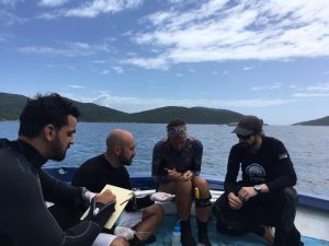 Triando amostras em Arraial do Cabo – esquerda Matheus Pacheco, Thiago Mendes, Amana Garrido, Guilherme LongoFoto de Thiago Fiuza