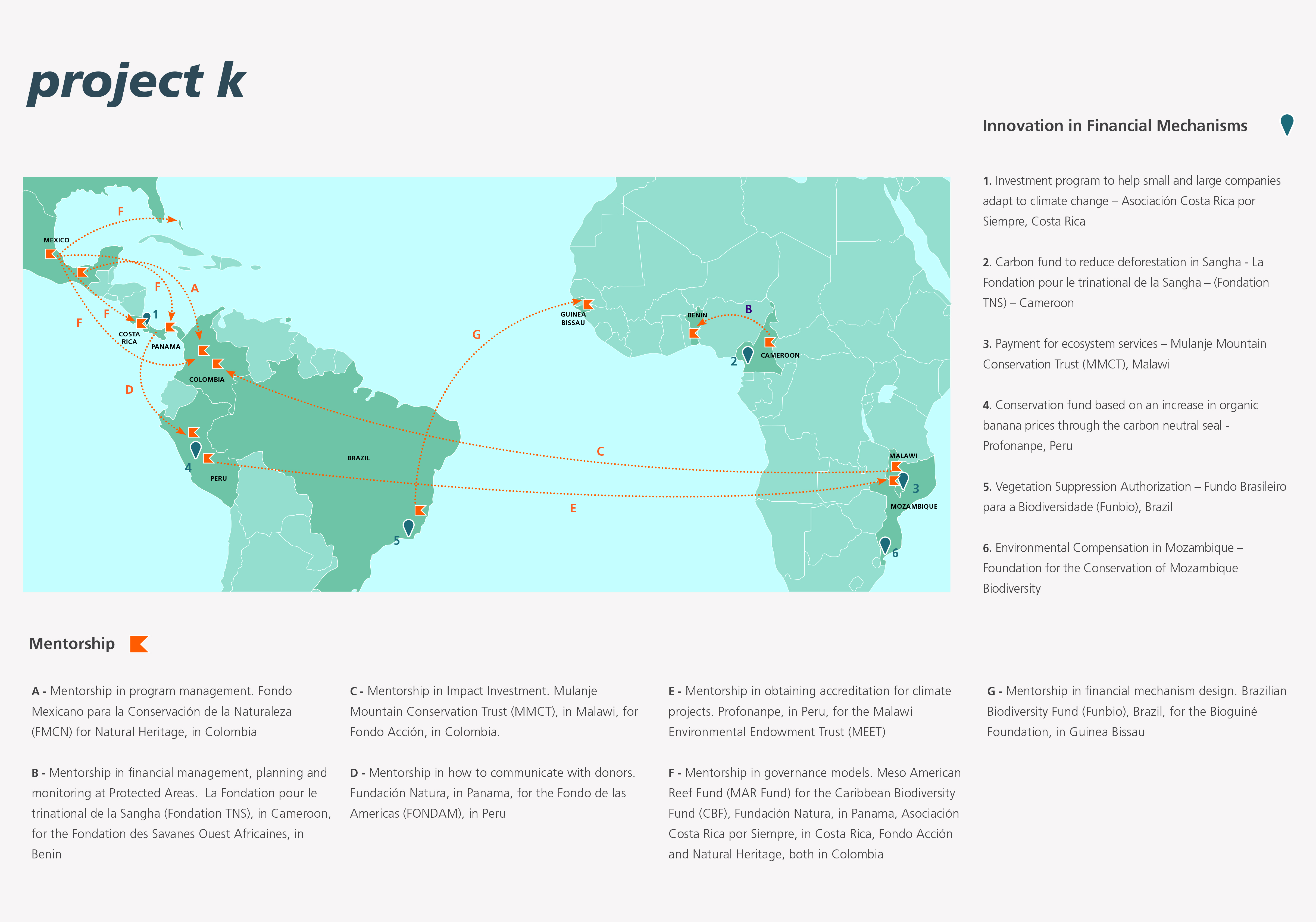 Knowledge for Action – Project K is a joint initiative by the Latin-American and Caribbean Network of Environmental Funds (RedLAC) and the Consortium of African Funds for the Environment (CAFE). Together, these networks represent 40 environmental funds from 28 countries. The members are the financial managers of some of the most important conservation projects on these continents. Funbio’s role is to manage the project, which is divided into four components: (1) innovation in financial mechanisms; (2) training; (3) web platform; and (4) network strengthening.